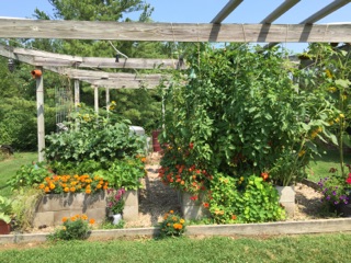 One challenge was putting too much in each section! I’ll be building 2 more 4×8 sections for next year (plus a separate section just for the garlic—that will be a wooden box about 12’x8’…This year was not so good for garlic and the onion maggots were awful! So we’re going to cut down on the amount of garlic and do it in a container just to see how much easier and more robust it can be—we’ll keep you posted!)